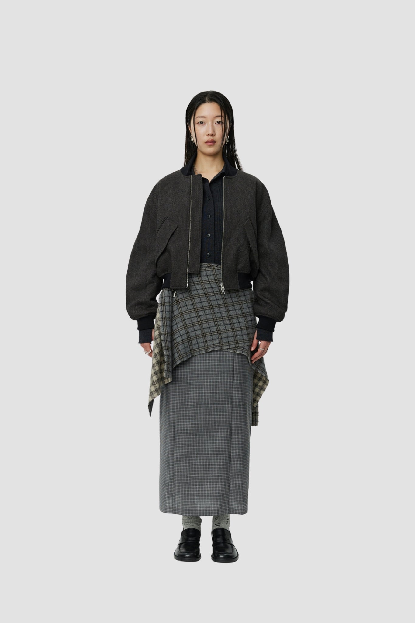 Blouson en laine mélangée rayée, pensé pour une silhouette ample et contemporaine. Sa coupe boxy et sa texture subtile en font une pièce de caractère, entre élégance classique et attitude décontractée.