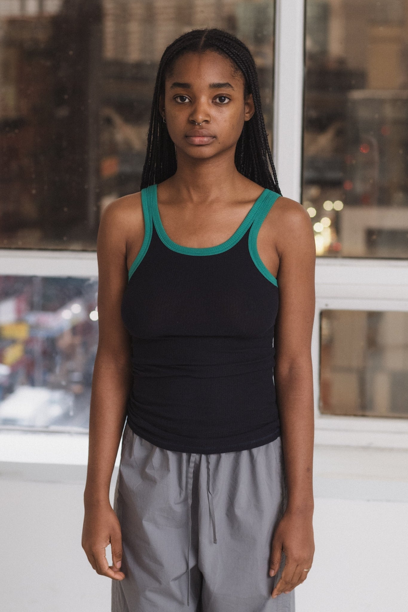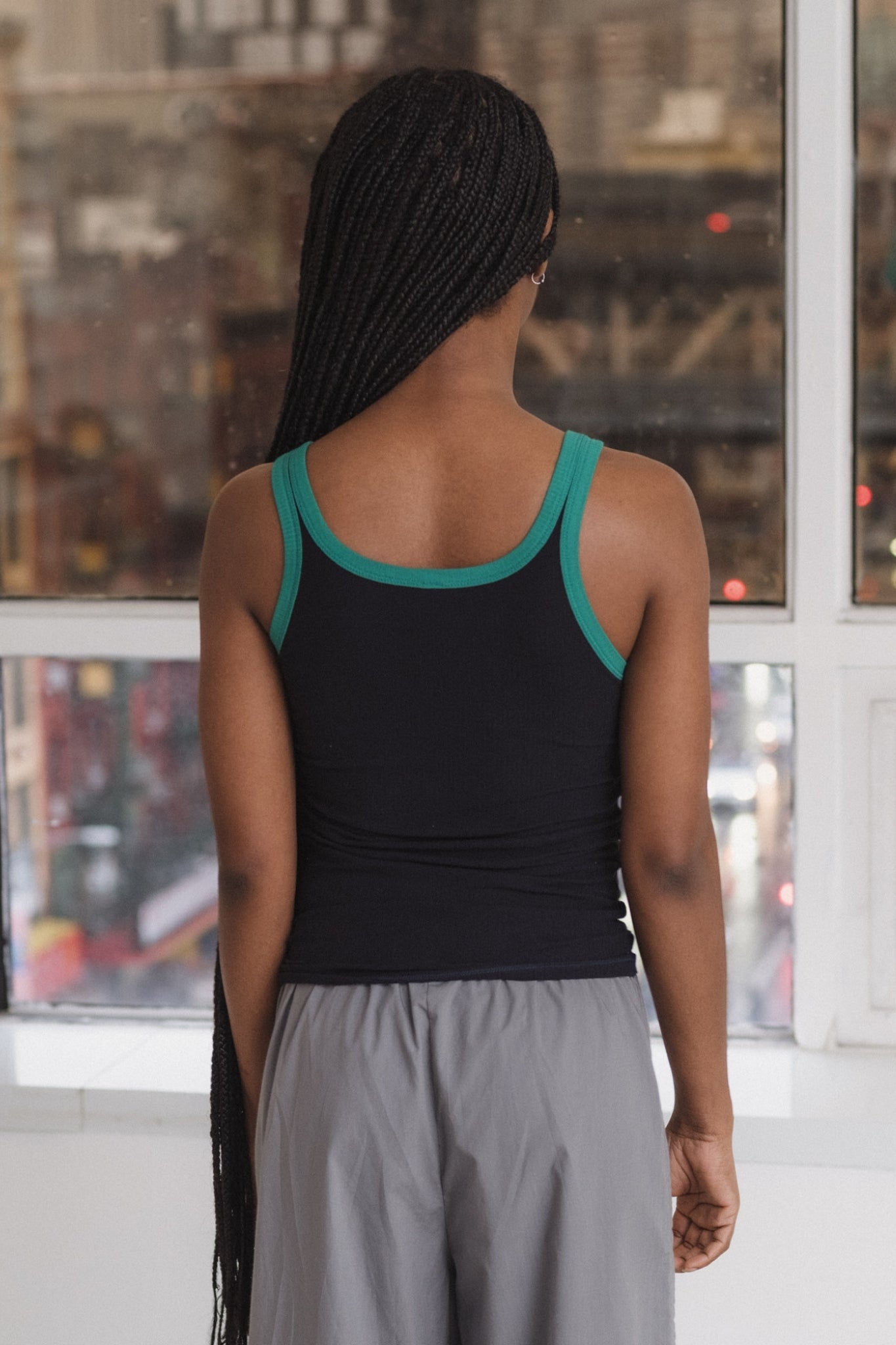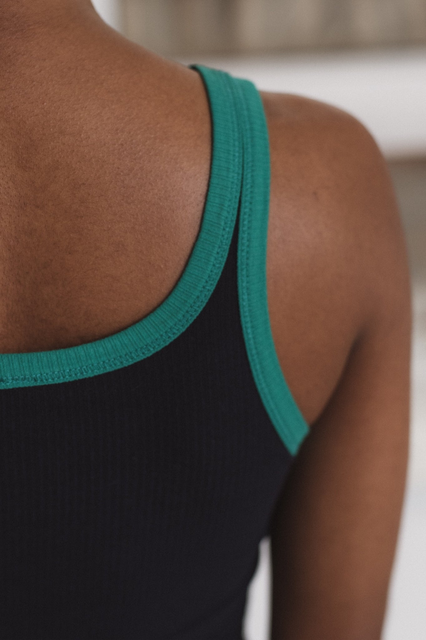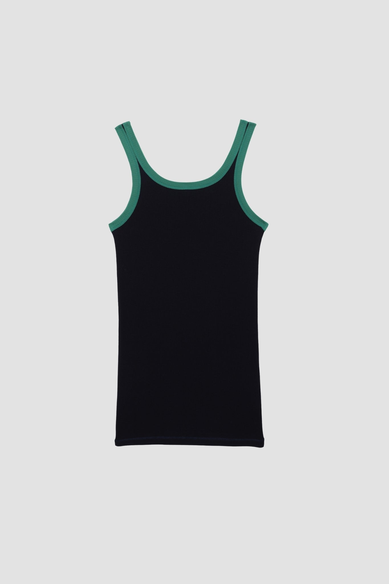 Fitted tank top with a minimalist design and a black/green contrast. Made from eco-friendly fabric with a slim fit, it's perfect on its own or as a layer.