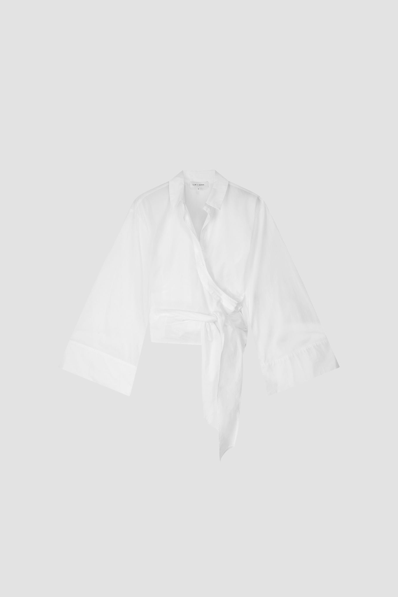 Breathable cotton blouse with sculptural volume thanks to wide sleeves and a tie closure - a balance between comfort and a refined silhouette.