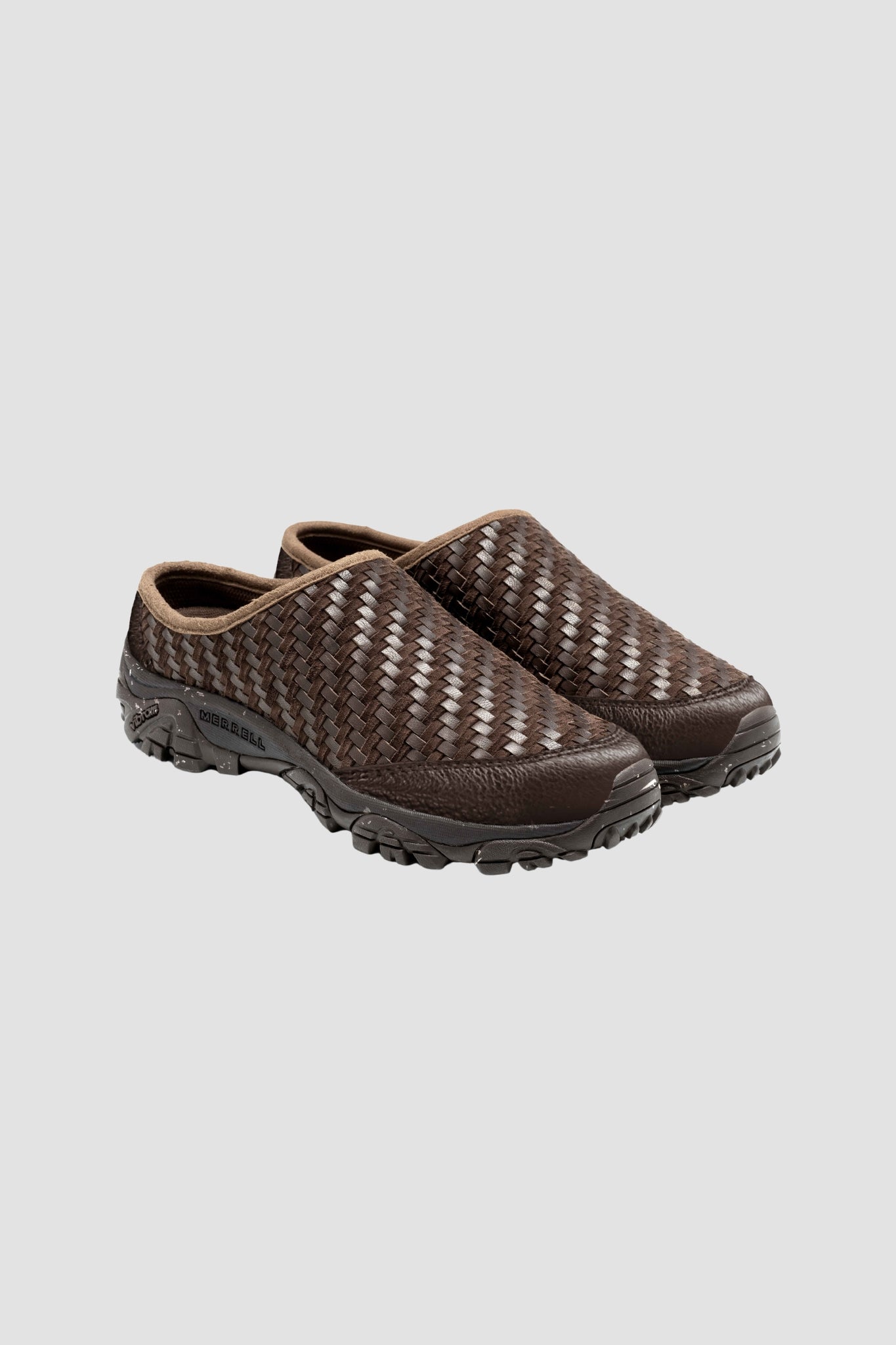 Outdoor-inspired mules designed for comfort and durability. The Moab 2 Slide LTR Woven SE combines a full-grain leather and woven textile upper with a cushioning EVA midsole. Nylon arch support and an air cushion in the heel provide support and shock absorption. Its Vibram® sole guarantees excellent traction, even on uneven terrain.
