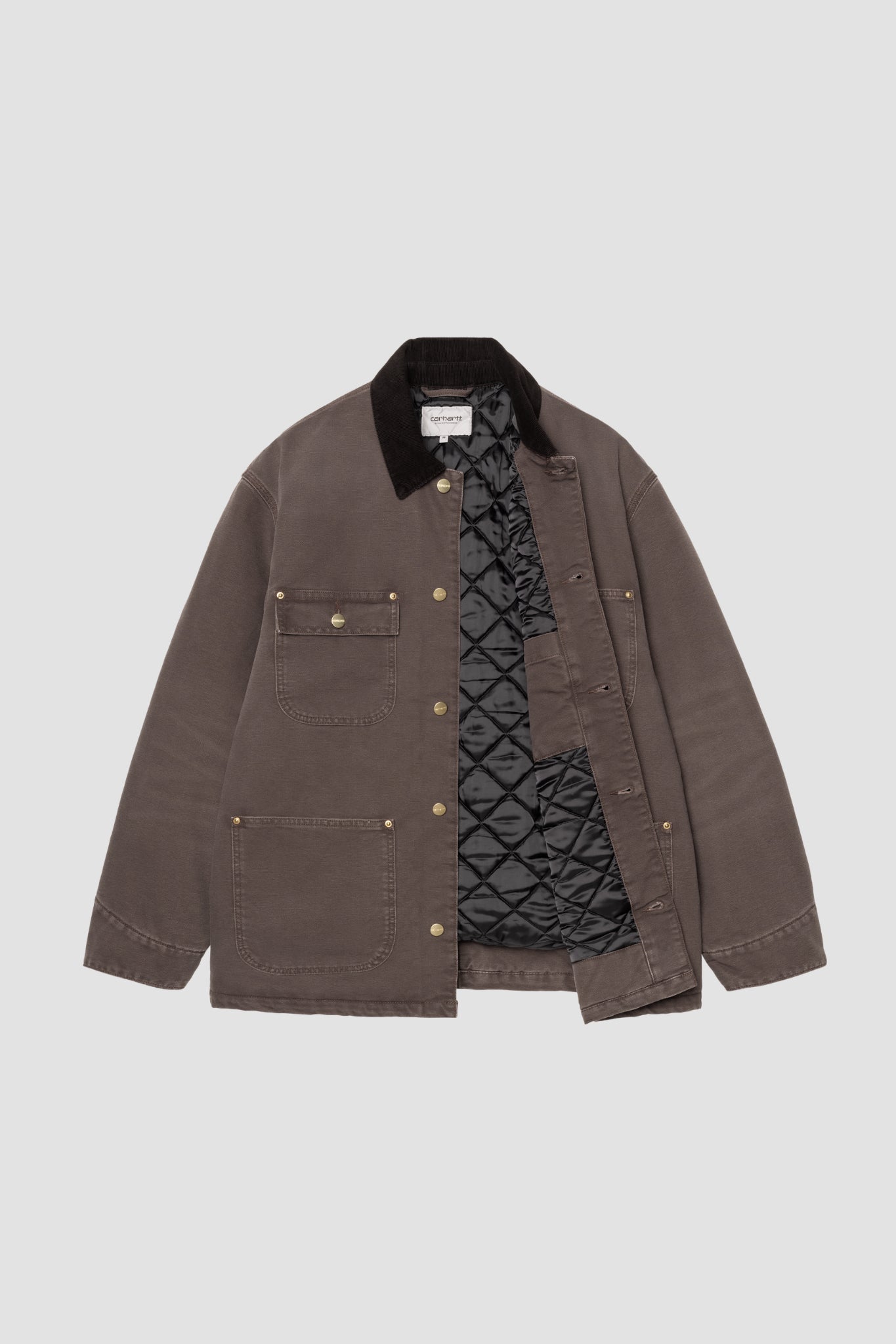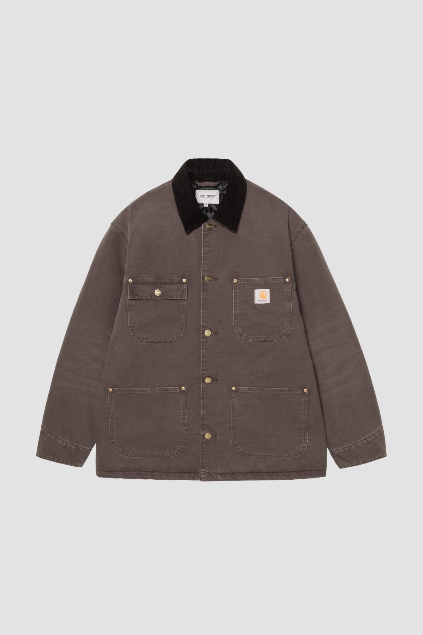 A Carhartt workwear icon, the OG Chore Coat is crafted from rugged Hamilton Brown canvas with a contrasting Tobacco Stone collar. Classic buttoning, multiple pockets, and a loose fit deliver authentic style.