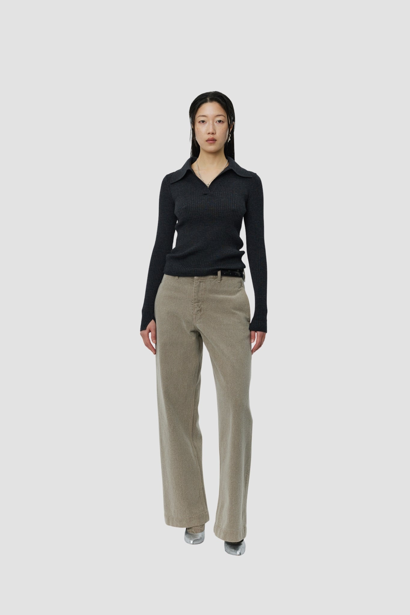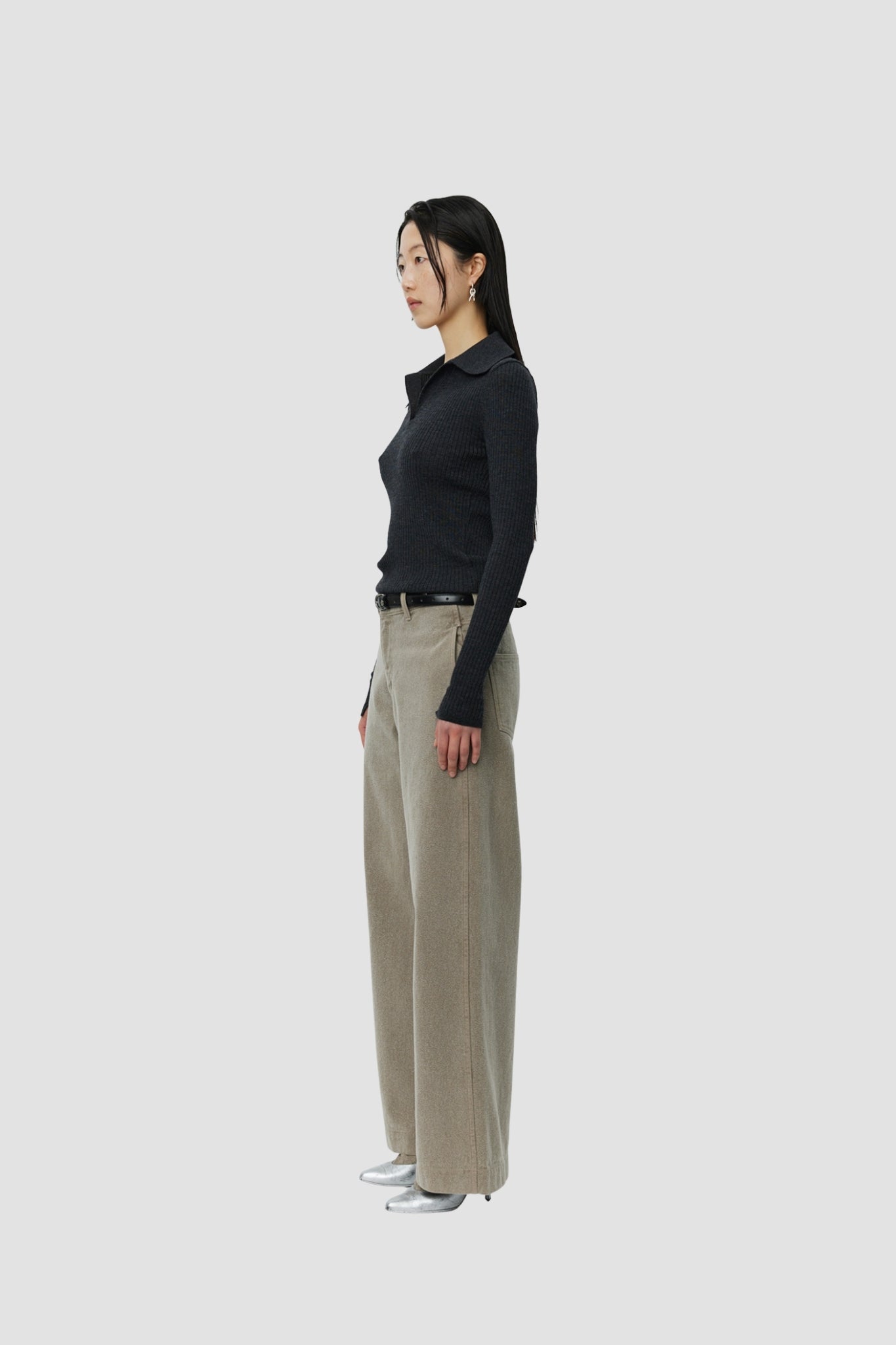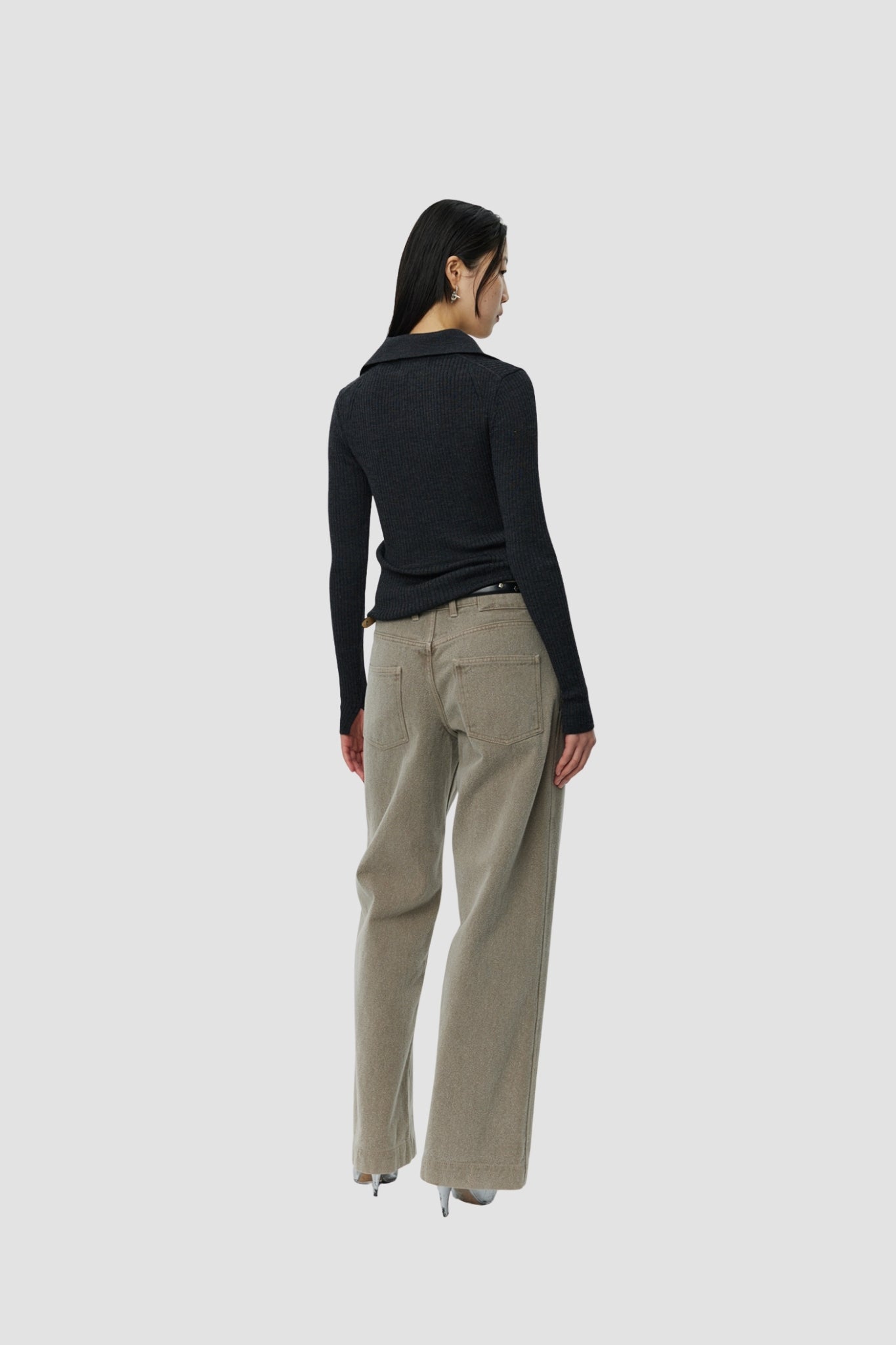 Minimalist polo shirt without a button placket, in dark gray. A clean take on sportswear style.