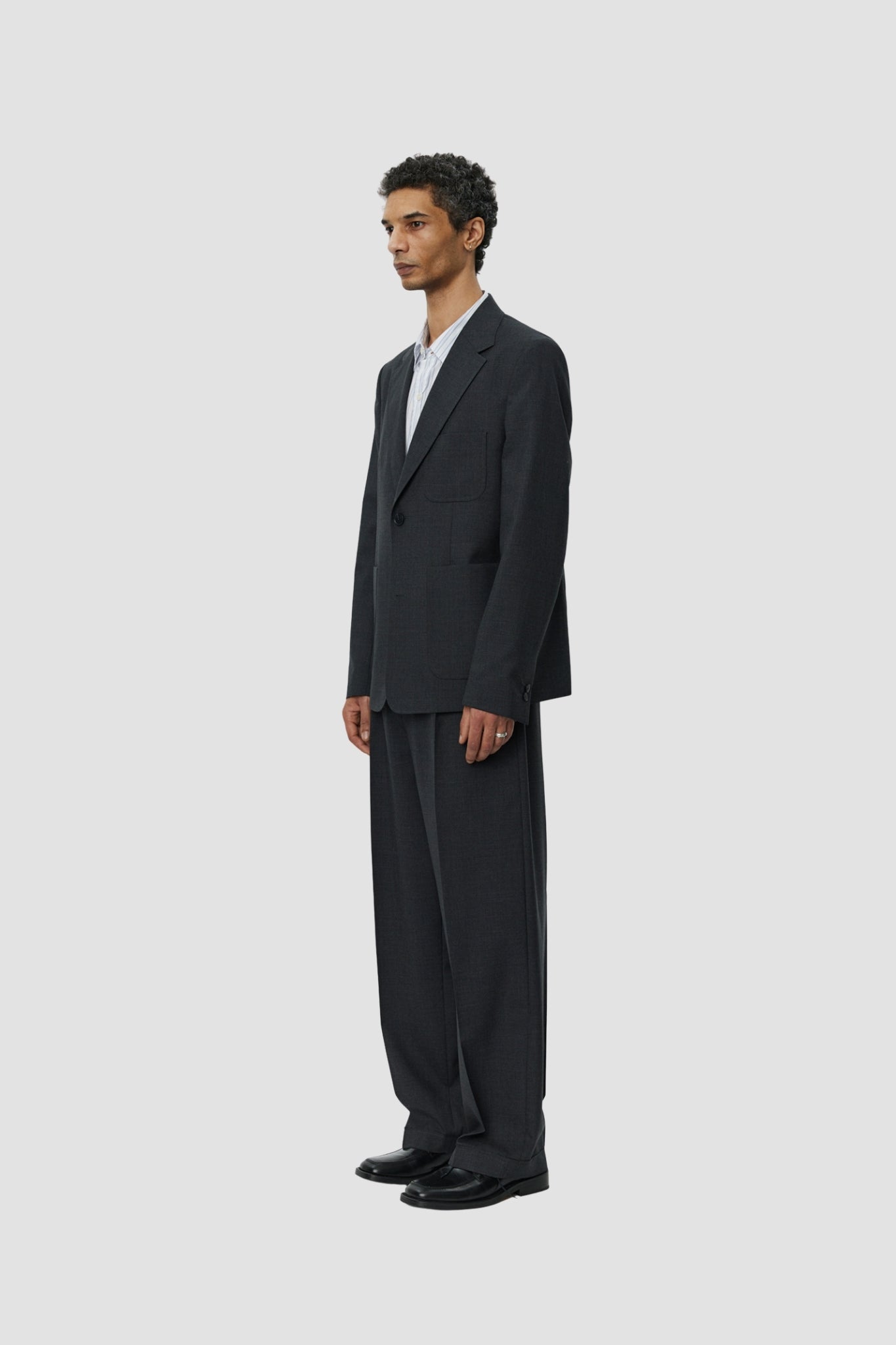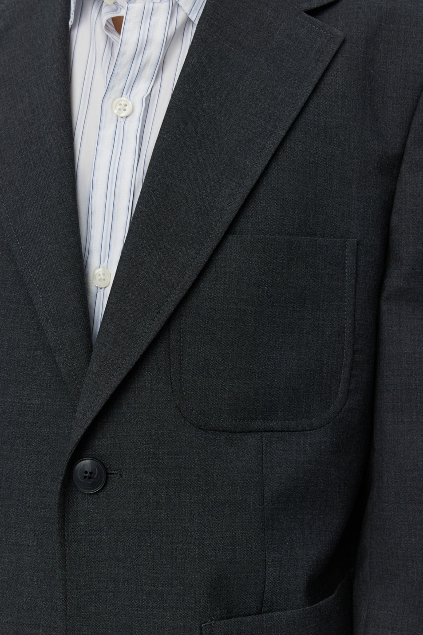 The gray wool Patch Pocket Blazer combines tailored style with casual style. Its slightly oversized look and patch pockets reflect mfpen's unique aesthetic.