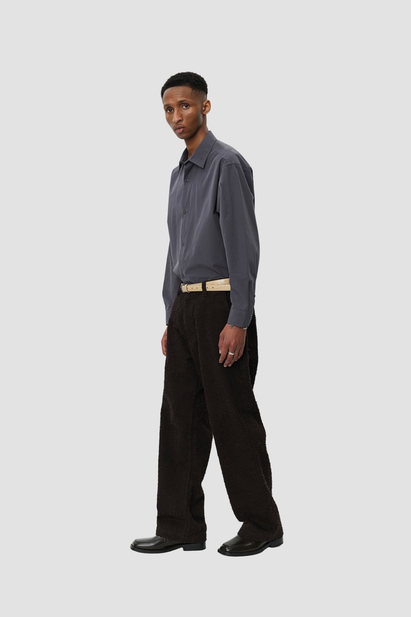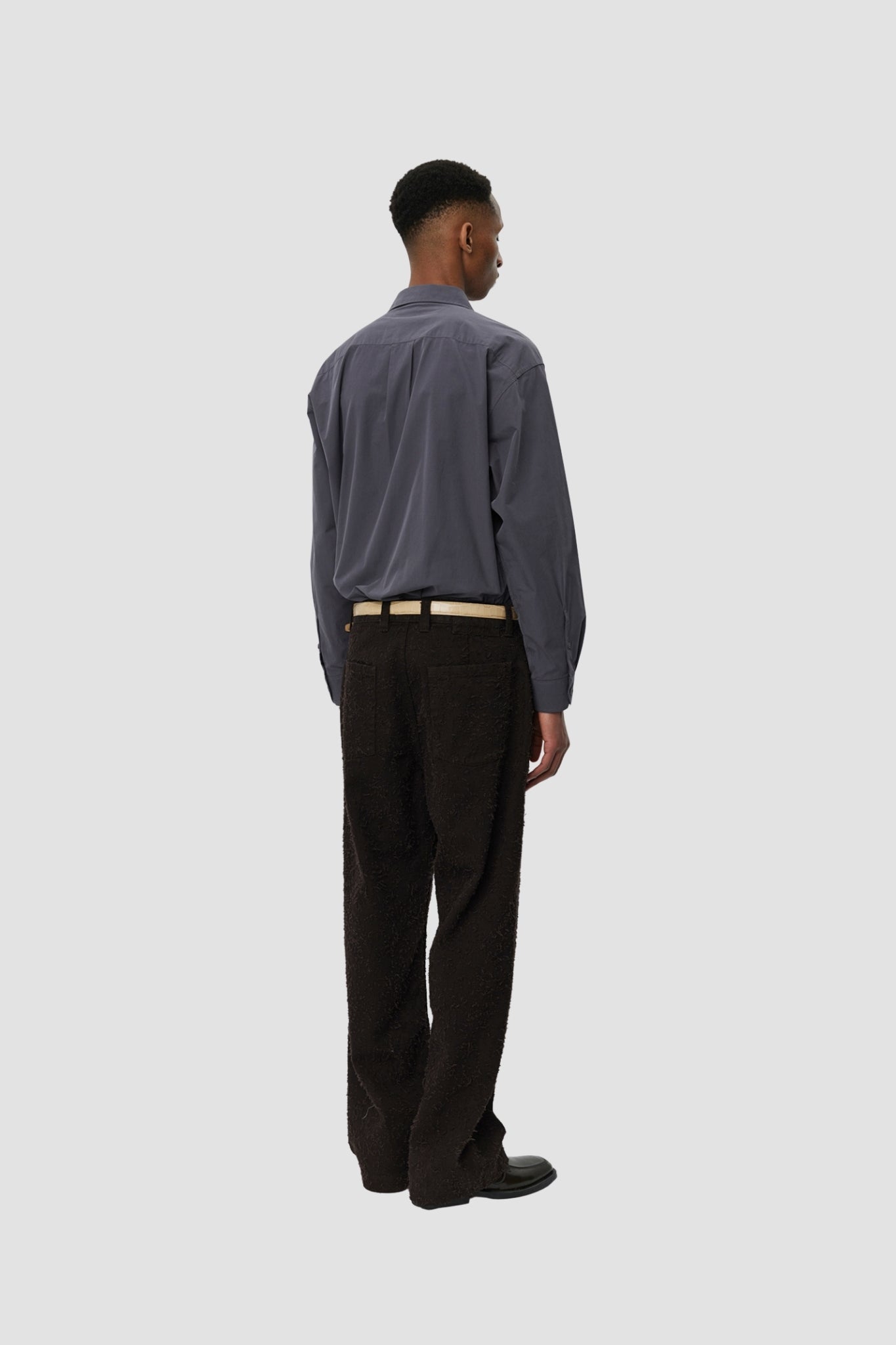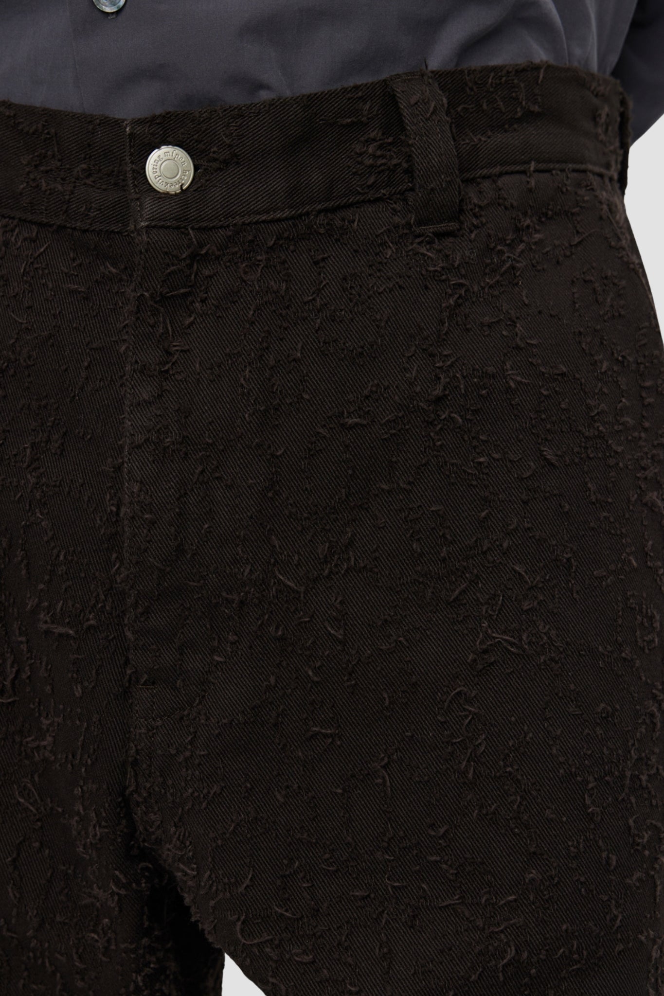 The Punch Out Jeans in dark brown combine a loose fit with a unique texture. These jeans break away from traditional denim codes.