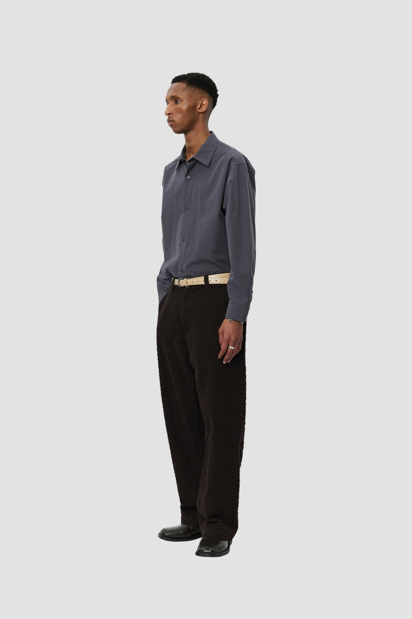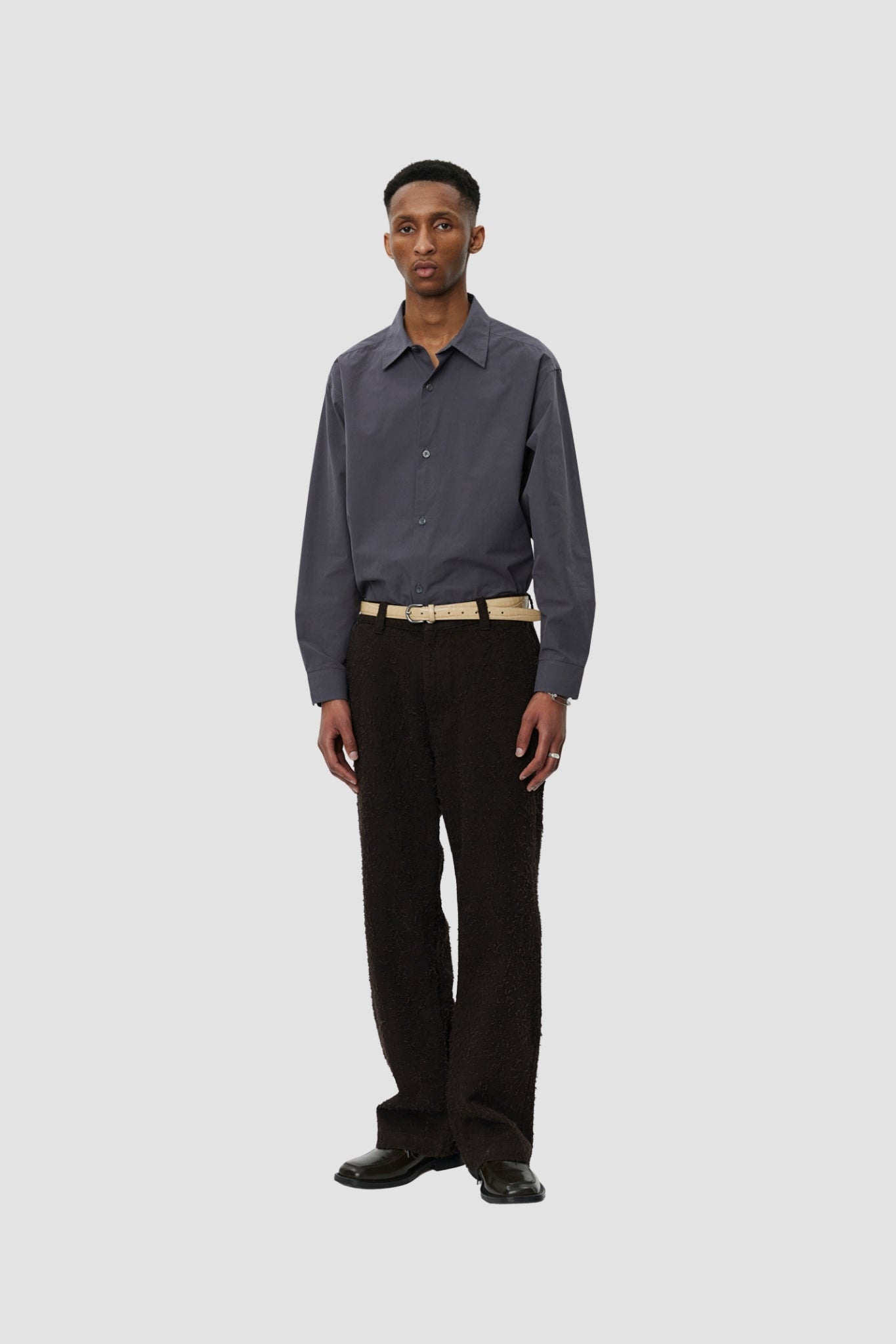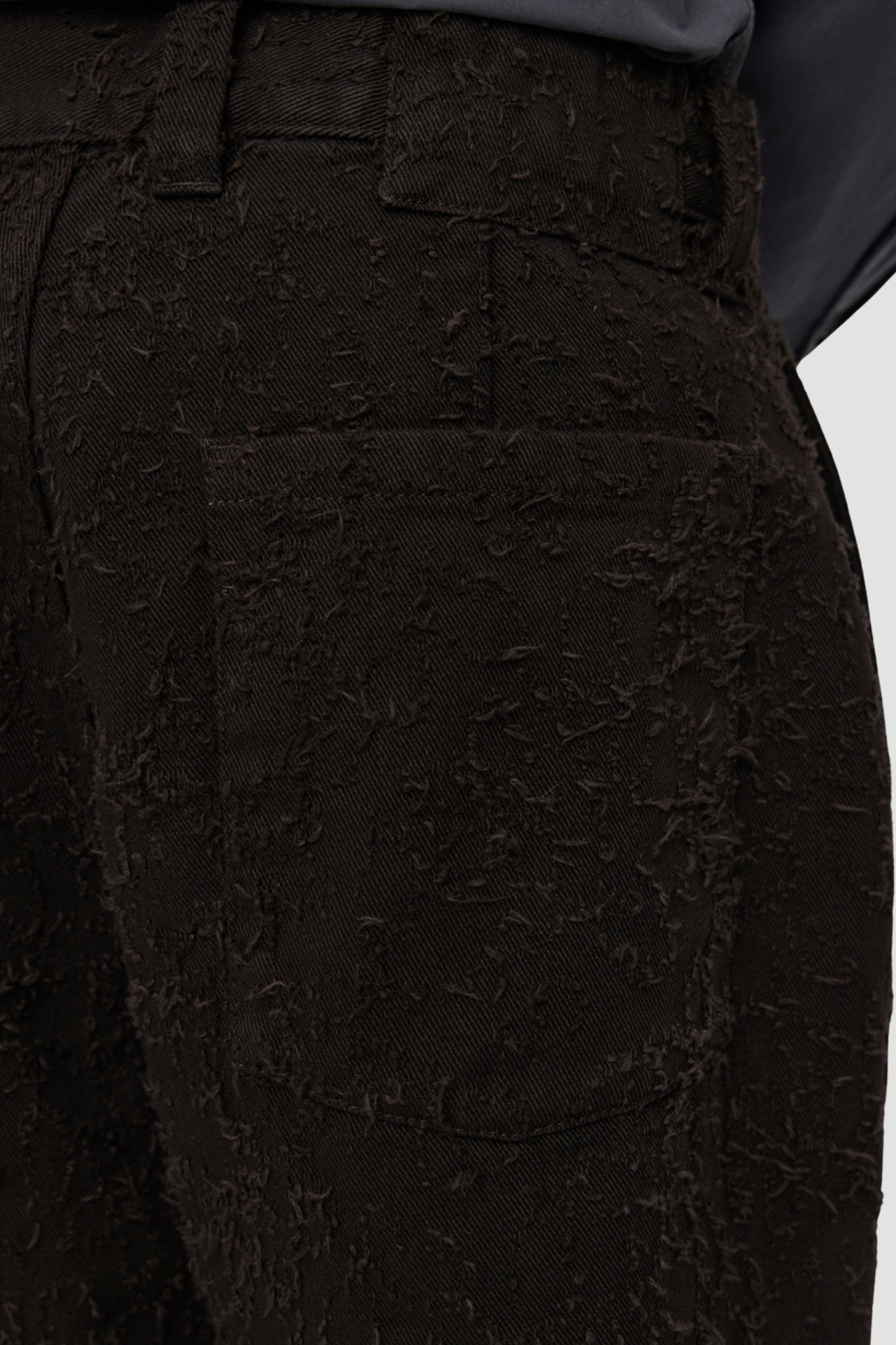 The Punch Out Jeans in dark brown combine a loose fit with a unique texture. These jeans break away from traditional denim codes.