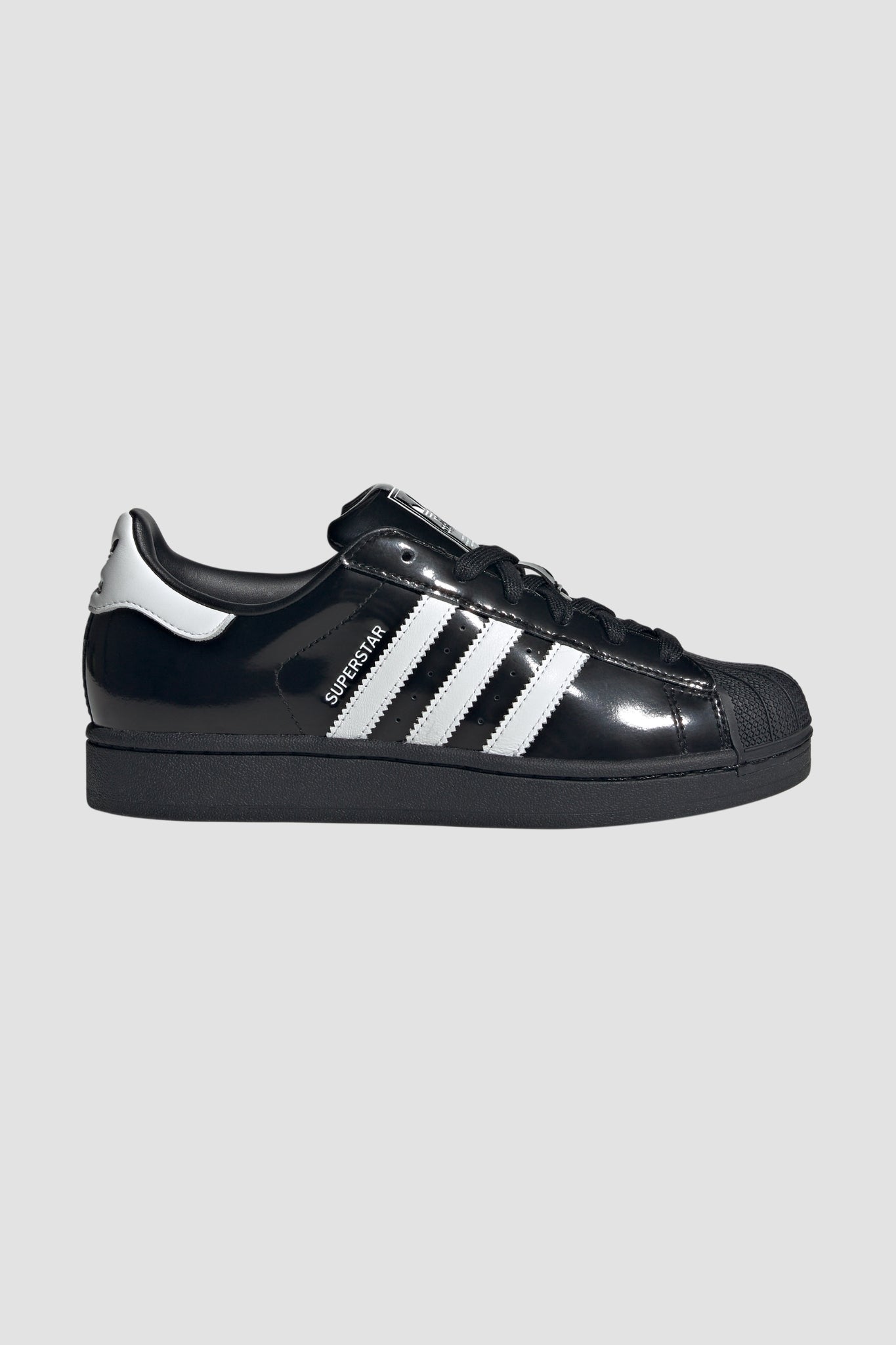 The legendary Superstar is adorned with a glossy black finish, for a modern twist on the iconic shell toe silhouette.