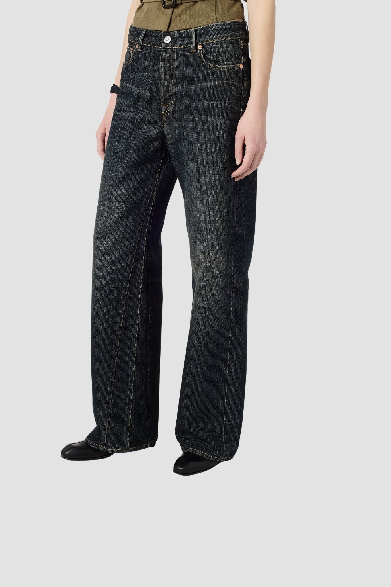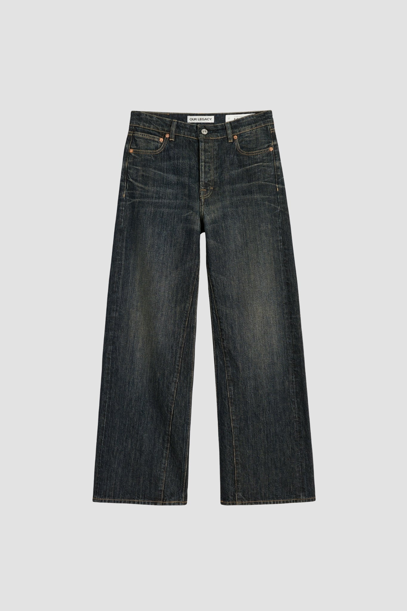 Our Legacy's Treble Cut jeans feature a slightly wide, straight fit, crafted from stiff Italian denim in a unique Clay Tint colorway. Their textured appearance and nuanced color give them a distinctive character while maintaining a classic silhouette. Premium details and careful finishing are true to the Our Legacy universe.