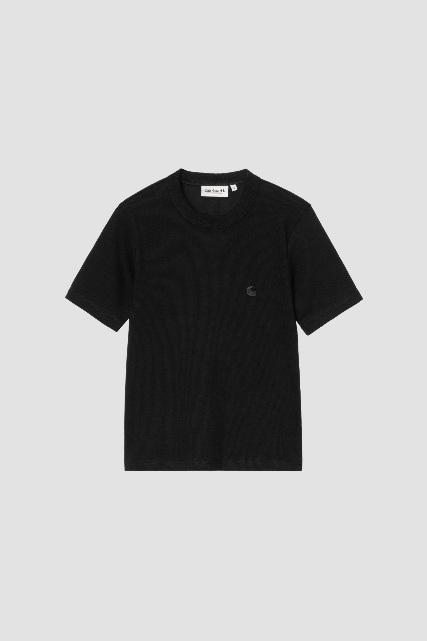 Women's short-sleeved T-shirt in organic cotton jersey, with a loose fit and ribbed neckline. The Philipa style impresses with its simple silhouette, everyday comfort, and discreet tone-on-tone logo. Perfect for a casual, minimalist look.