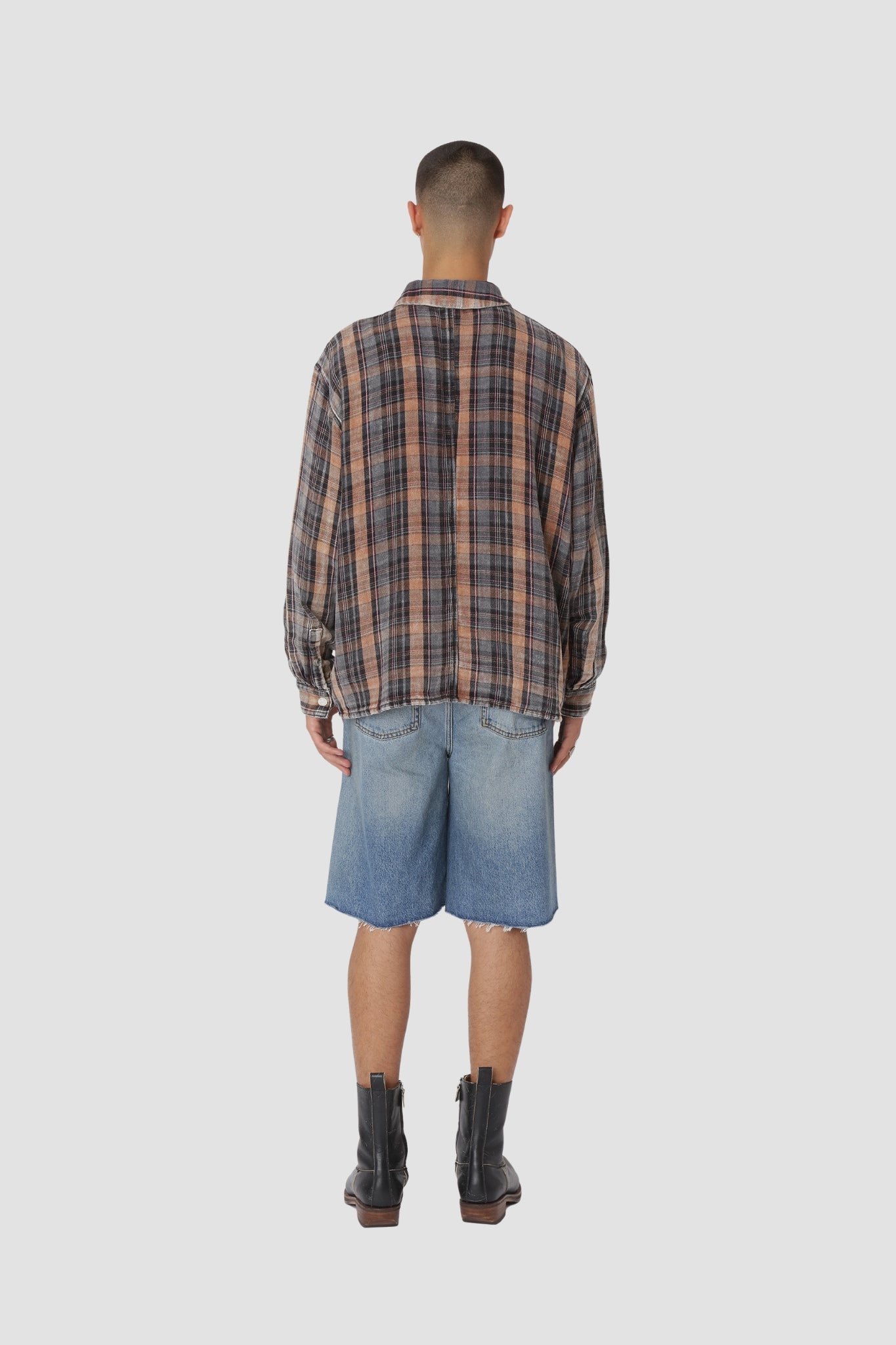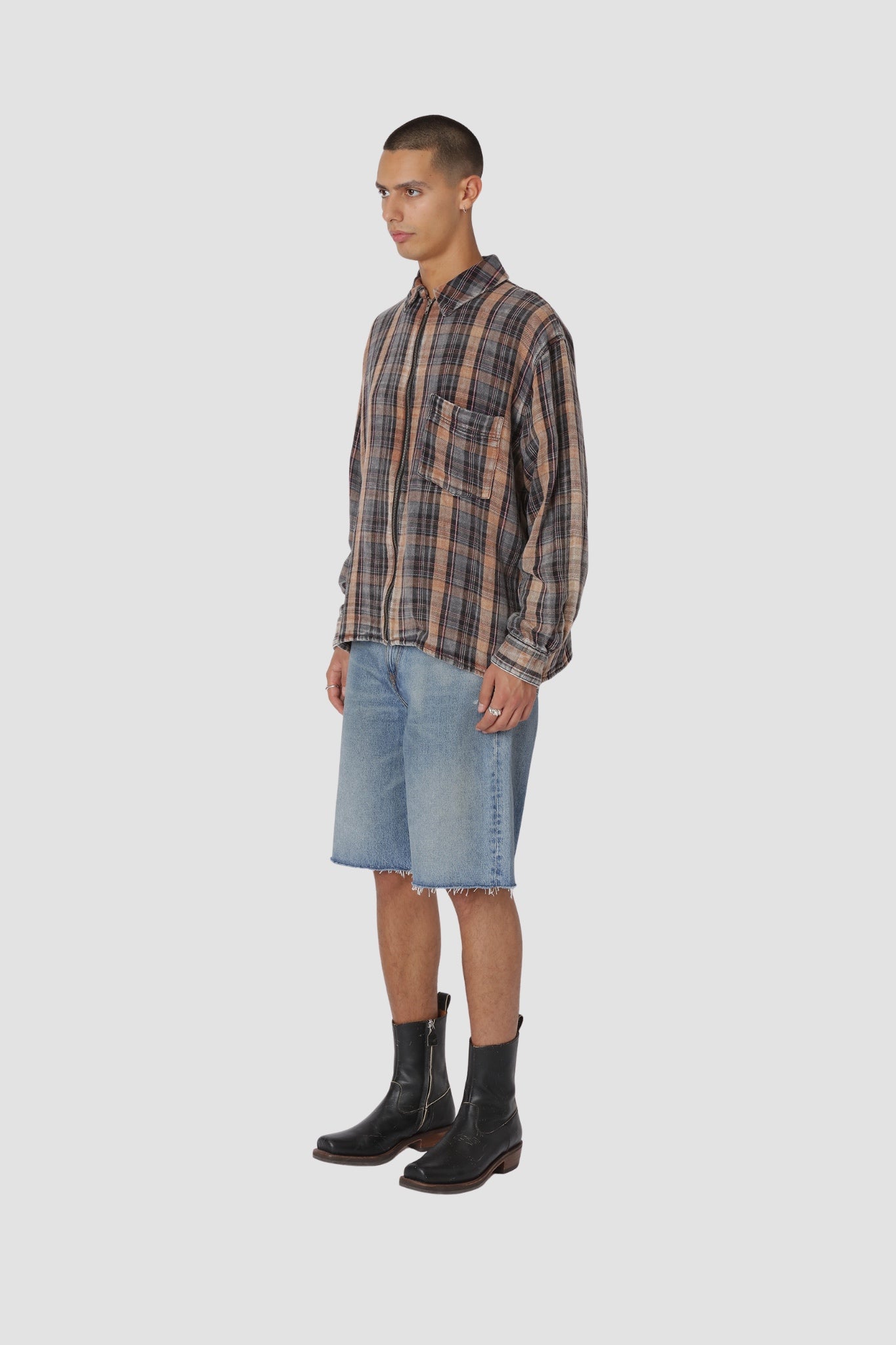 Zip-up overshirt in faded checks in light tones. Boxy fit, short sleeves, chest pockets. Retro look inspired by workwear.