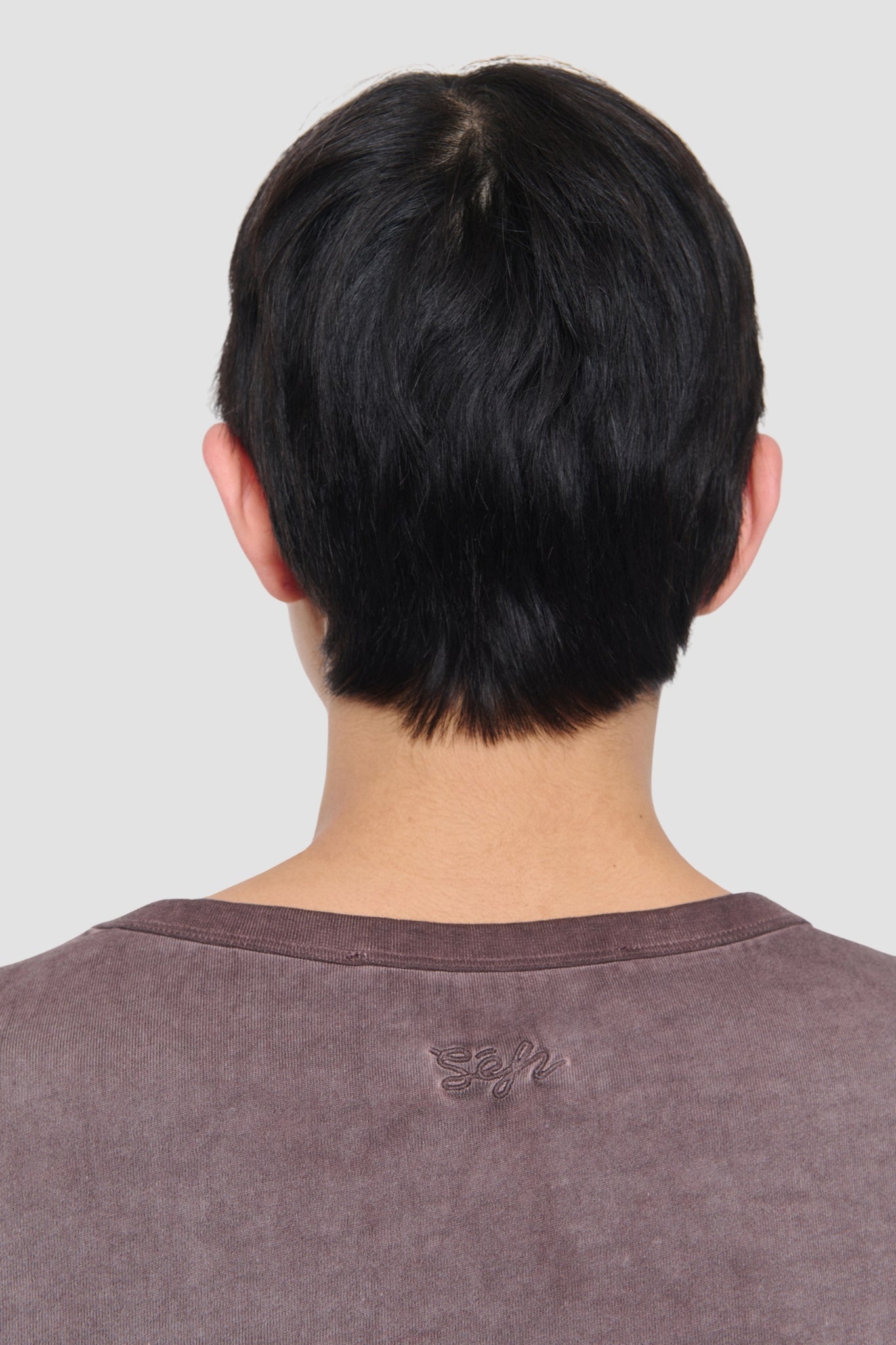 Un tee épais, sec au toucher, avec une teinte gris huile profonde. Simple, mais travaillé dans la nuance.