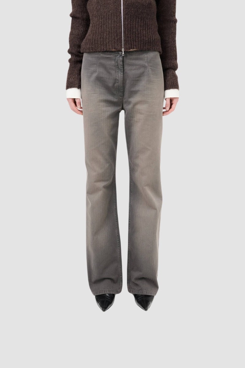 Le Biker Trouser en French Sun Faded Herringbone allie confort et élégance grâce à sa conception en tissu herringbone de coton pigmenté. Avec sa taille haute et sa coupe droite, ce pantalon présente un aspect vintage accentué par un délavage qui lui confère une touche unique. Il est doté d'une fermeture à glissière YKK et d'un crochet, assurant un maintien optimal.
