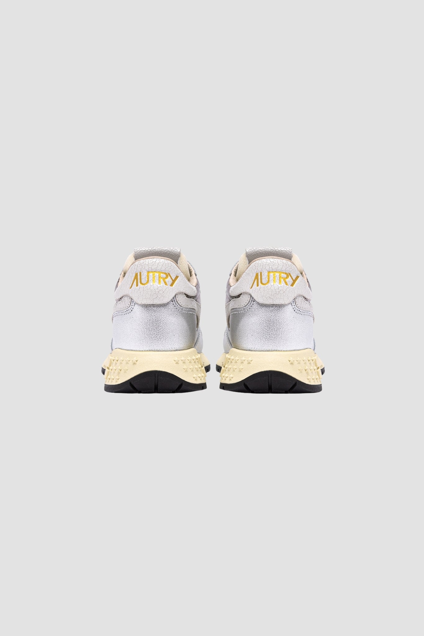 Une interprétation monochrome, brillante, presque métallisée. Une sneaker qui fait écho aux archives running futuristes des années 2000.
