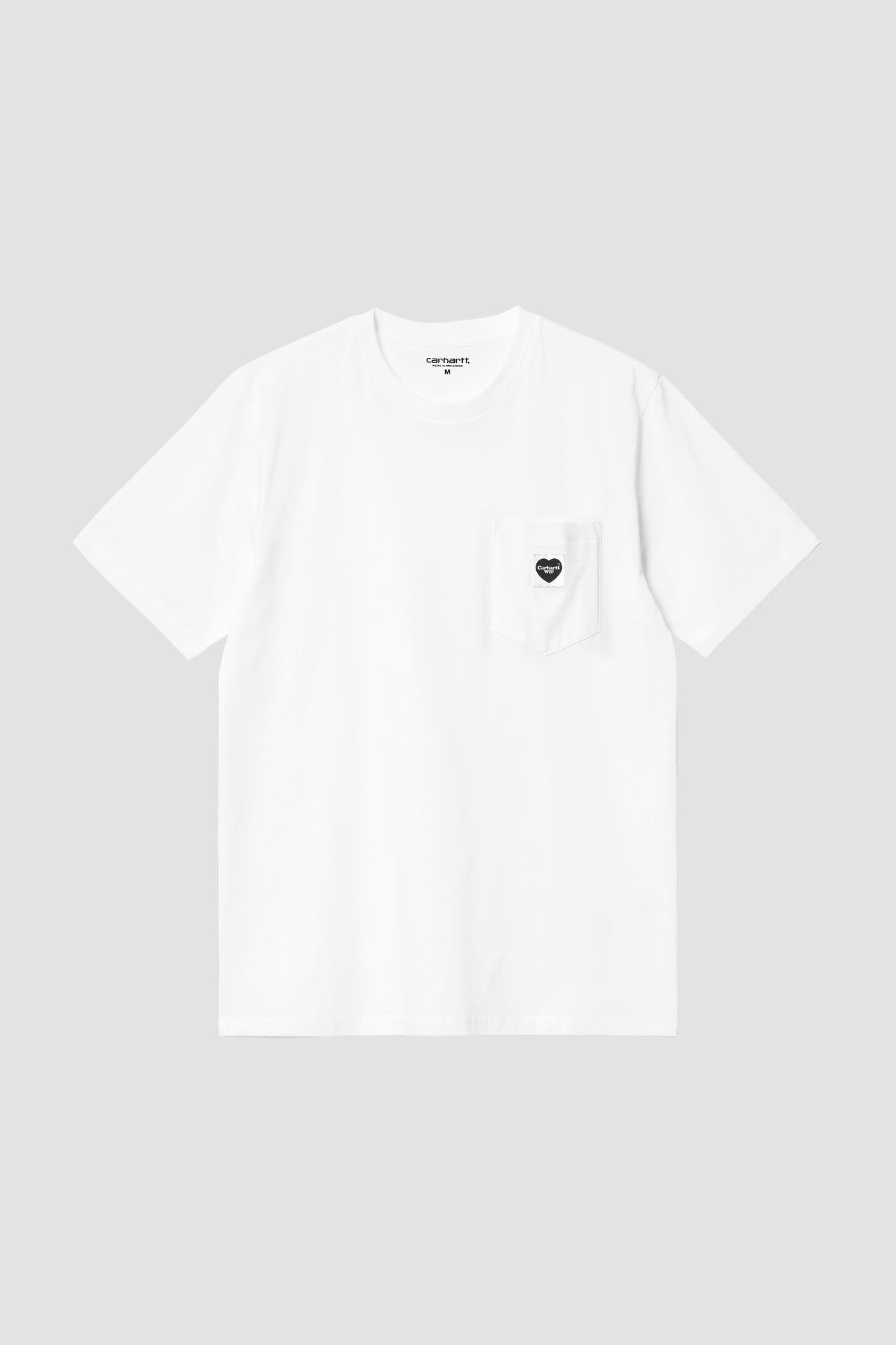 Version blanche du t-shirt à poche avec cœur brodé noir. Minimaliste et facile à assortir.