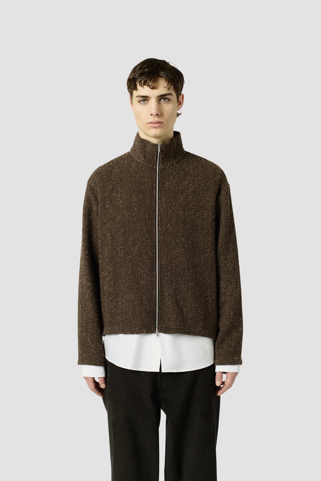 SHRUNKEN FULLZIP POLO Brown Sparse Buckle