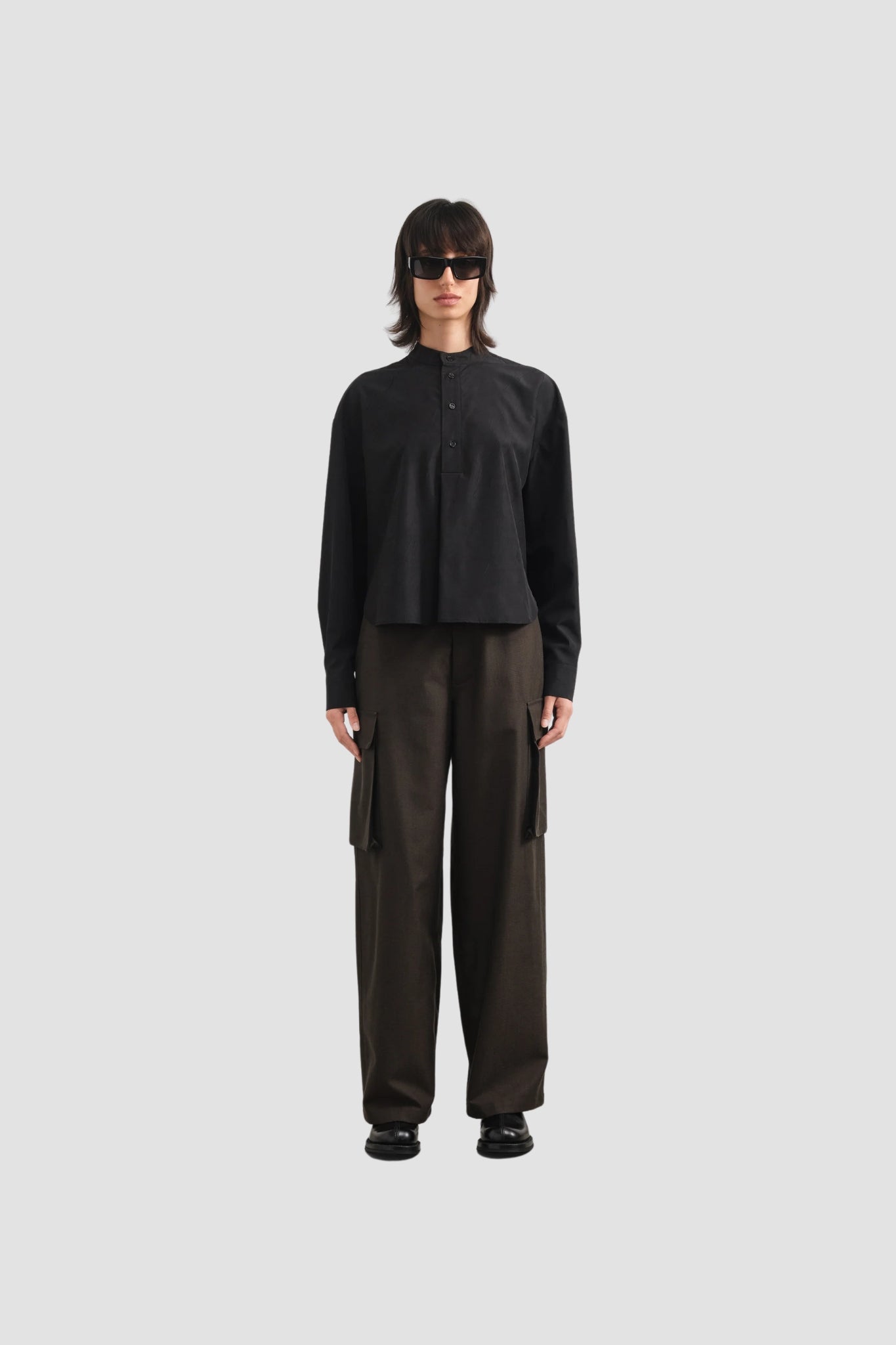 Le Stoosh Cargo Trouser Brown est un pantalon cargo marron de YMC, doté de multiples poches fonctionnelles et d'une coupe ample, idéal pour un look utilitaire tendance.