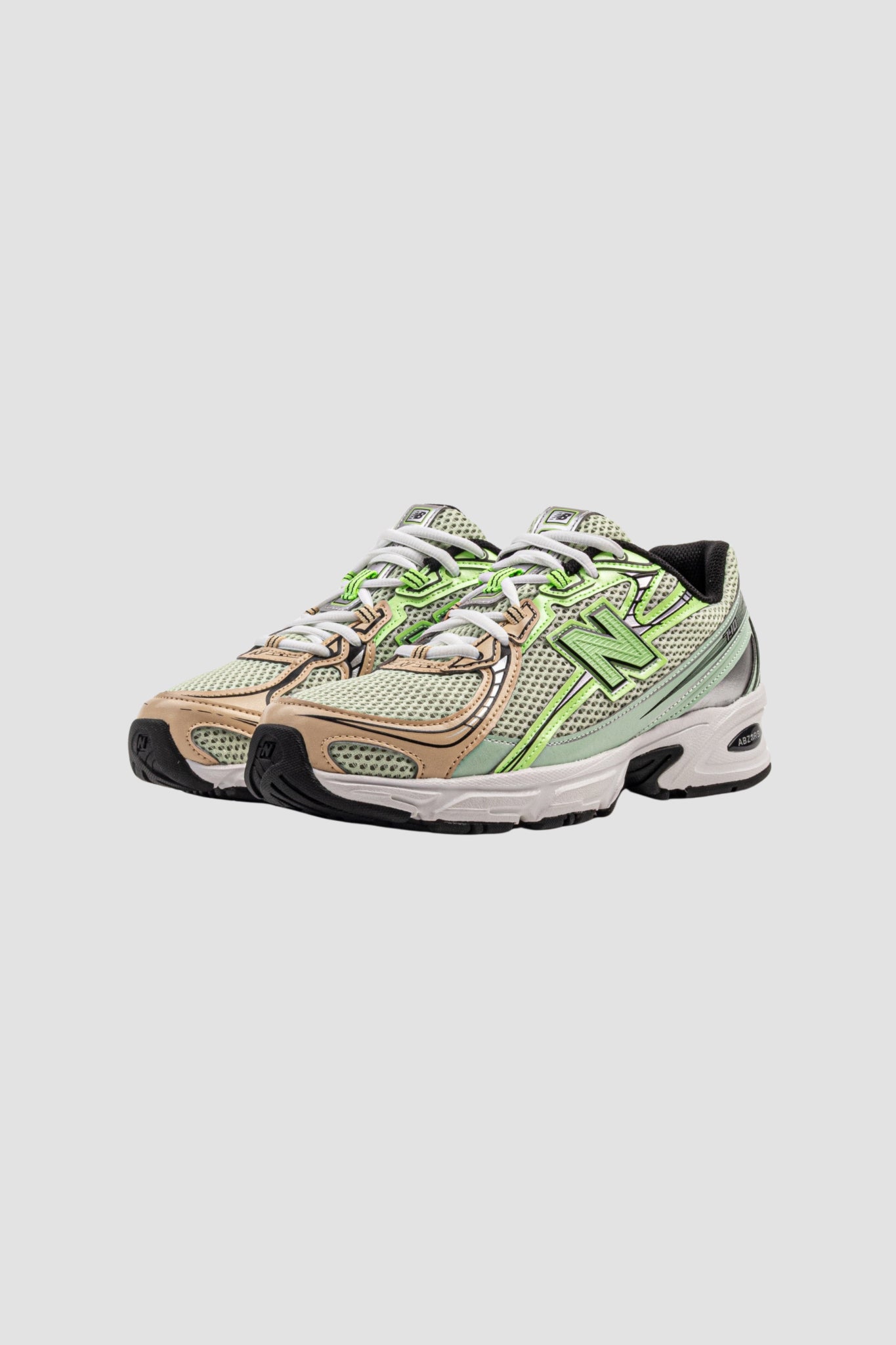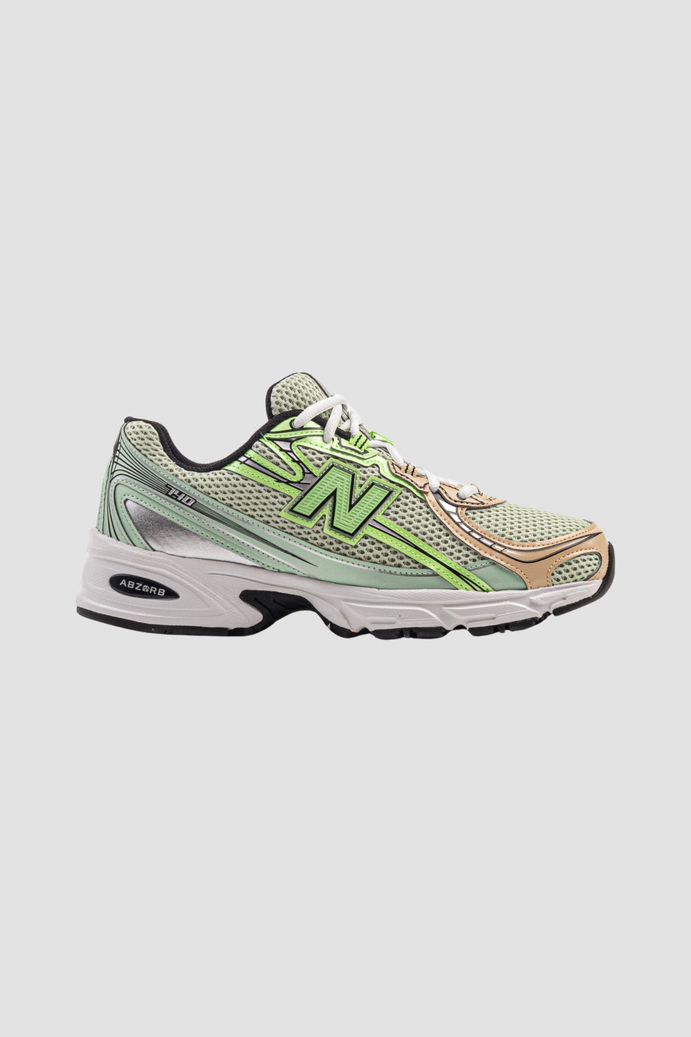 Un mix de fraîcheur et de tons naturels sur cette silhouette 740 à l’inspiration vintage. Tige en mesh respirant et suède, semelle intermédiaire typée basket. Coloris menthe et bois clair pour un look affirmé et estival.