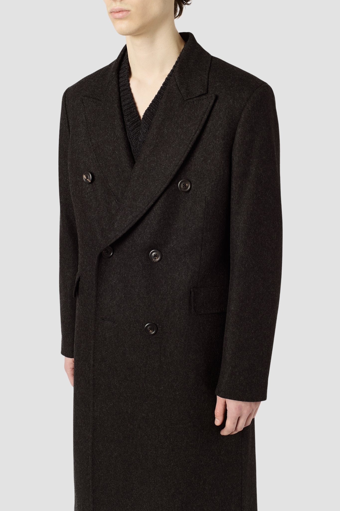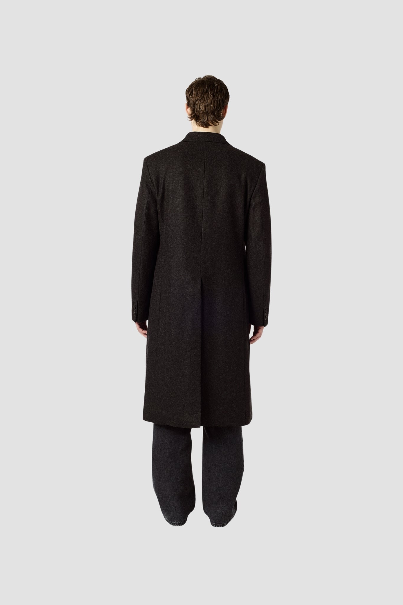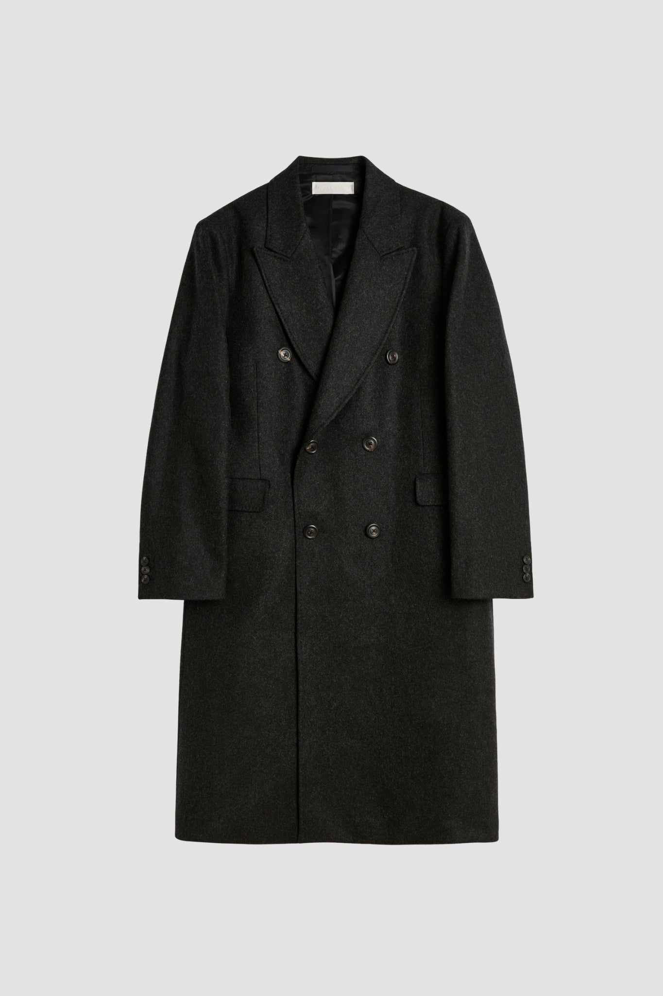 Manteau long en laine mélangée Melton déperlante coloris granite. Le Whale Coat propose une coupe droite, un col cranté imposant et une fermeture à boutons cachés. Parfait pour l’hiver avec son tissu dense et sa silhouette affirmée.